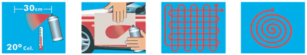 4. Баллон с аэрозольной краской держите вертикально, на расстоянии приблизительно 20-30 см от окрашиваемой поверхности.